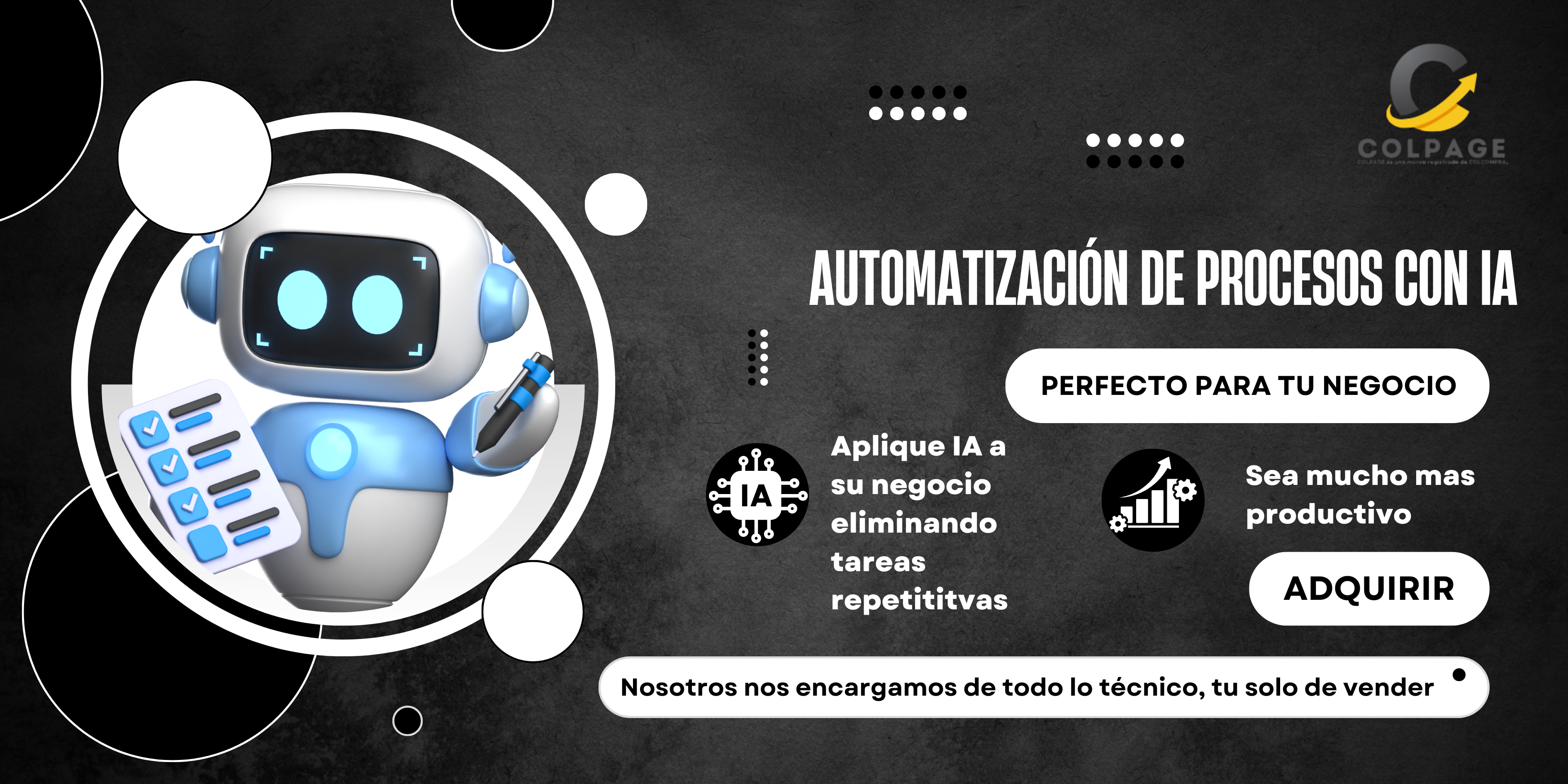 En Colpage, ofrecemos soluciones de desarrollo de automatizaciones a la medida adaptadas a las necesidades específicas de tu negocio. Nos especializamos en desarrollo web y aplicaciones móviles, brindando soluciones escalables y personalizadas para que tu empresa crezca de manera eficiente y sin complicaciones técnicas.