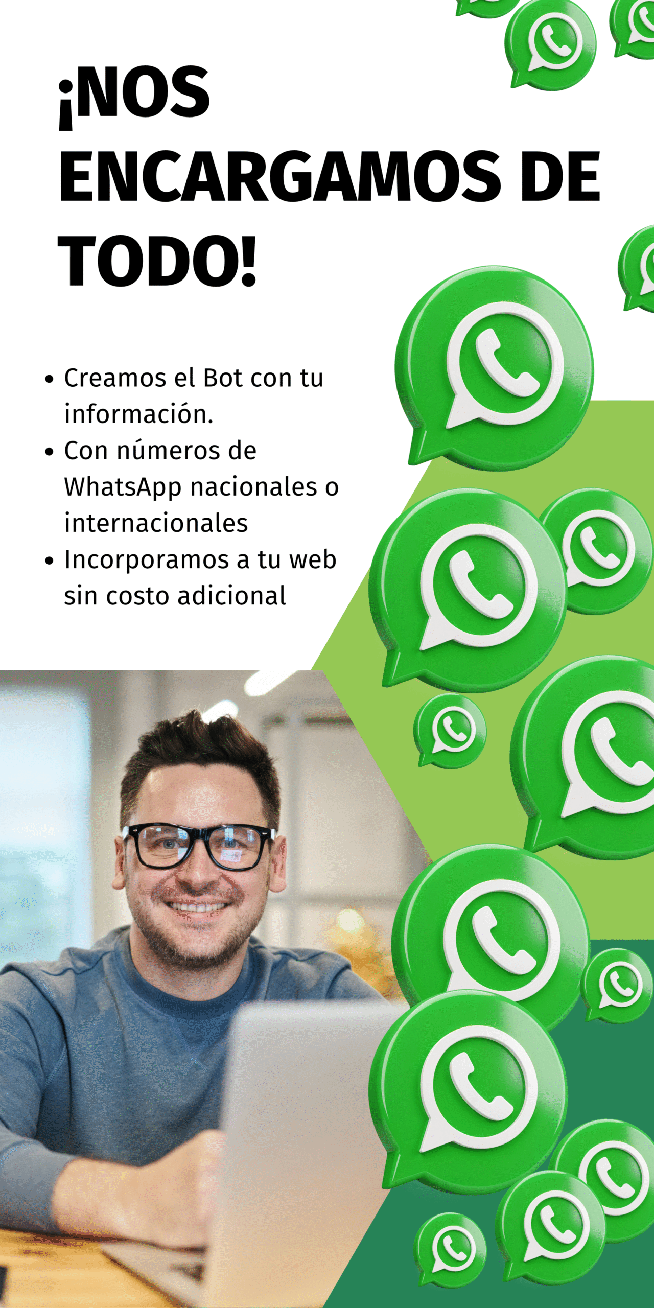 Con la información de tu negocio, creamos el Bot, lo ponemos a funcionar e incluso lo colocamos en tu página web sin cobros adicionales.