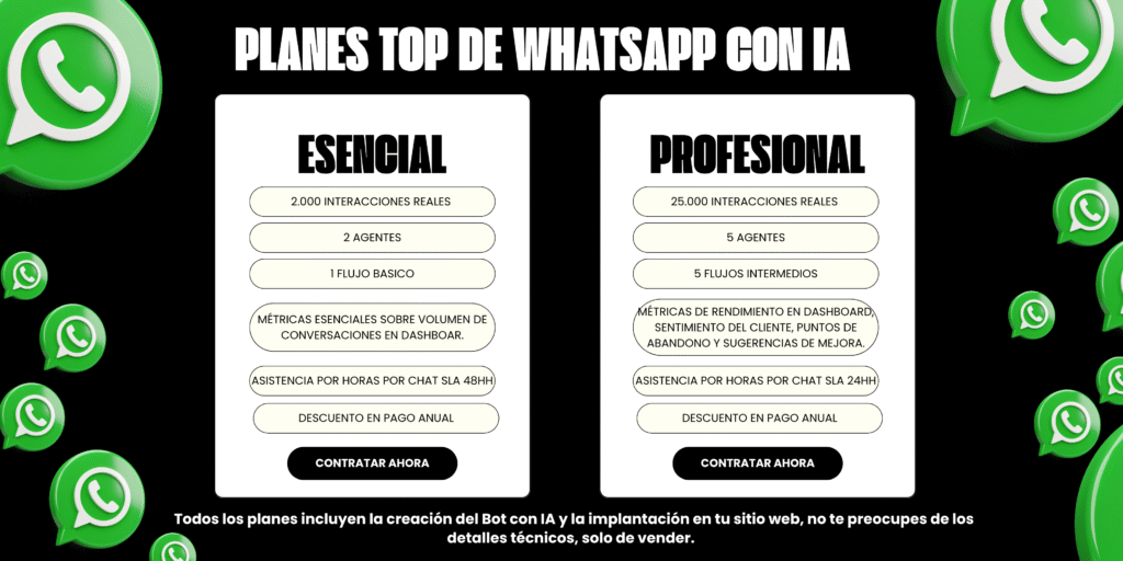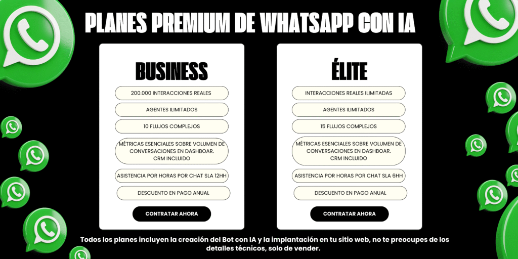 - Opción de añadir volumen de conversaciones en bloques de 1.000 a un costo bajo ($10.000 COP)